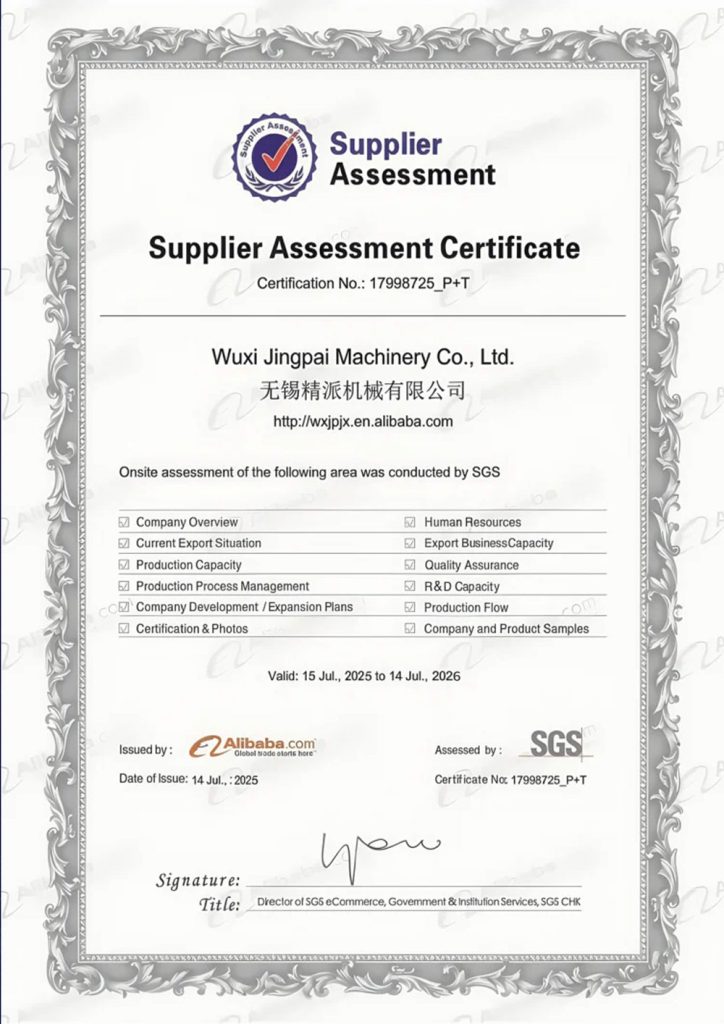 Расположенная в Уси, центре обрабатывающей промышленности, Цзинпай Машина располагает современным специализированным производственным и сборочным цехом площадью 5,000 квадратных метров. Понимая, что потребности каждого клиента уникальны, компания создала комплексную систему индивидуального подхода «один на один».